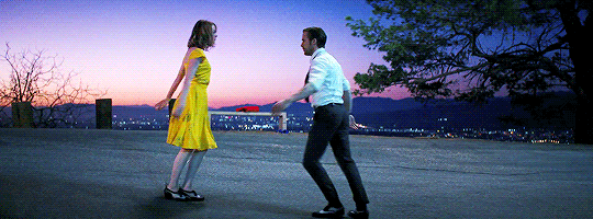 둘은 감미로운 노래 소절을 나눠 부르며 겉으론 아닌 척 하지만 조금씩 끌리는 속마음을 내보인다. 미아가 주섬주섬 가방에서 탭댄스 슈즈를 꺼낸다. 이 정도는 당연히 가방에 넣어 다니는 듯이.. 그리고 영화를 본 사람이라면 머릿속에 깊이 각인되어 있을 화려한 탭댄스 장면이 펼쳐진다. 멋진 밤, 멋진 배경, 멋진 커플. 마치 동화 같은, 매우 사랑스러운 씬이 아닐 수 없다.